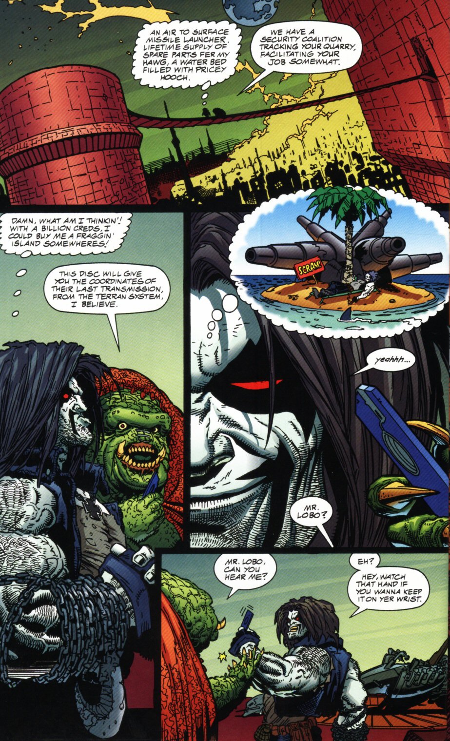 When two of the meanest mother-hubbers this side of Deadpool (who they both murdered) met each other, Mask crossed paths with DC’s main man; Lobo. The Mask fought Lobo when he was hired to bag “the ultimate bastich” and this, of course, led into a fight sparking their adventures. This duel showcased Mask matching and exceeding Lobo quite easily in multiple areas, like damaging him with explosions, keeping up with him physically, and outspeeding his regeneration. The only reason Lobo won when all was said and done, was his using a guilt bomb to, well, guilt him into taking the Mask off. He then proceeded to frag the universe with its powers, and this then got explained through a complicated paradox. So, scaling is pretty blatant, but since most argue it's an elseworlds Lobo, we’ll only be using feats from the crossover specifically.